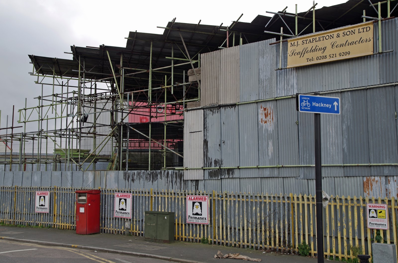 In the industrial depths of Walthamstow, and those do still exist, you can find a baffling array of anonymous sheds, gleaming stainless steel structures of unknown usefulness, just two old factory chimneys (as far as I know) not to mention a thousand white vans. But the premises of M J Stapleton and Son, Scaffolding Contractors, are far from anonymous. Located across the road from the municipal dump (which is now a well-organised recycling centre) their huge enclosure is made entirely out of scaffolding poles and corrugated iron. Which makes perfect sense. The structure is picturesque, although you would not get away with this ramshackle approach in most places. The dump itself has a similar structure, purpose unknown - an open shed ten metres high, containing nothing more than a few old fridges. These pockets of industrial activity are not exactly attractive, but they give a sense of authenticity to the area, a sense that the place exists for a productive purpose, not just as a satellite of London. Something that will be missed when the whole lot is pushed out by the ever-expanding demand for land for blocks of flats.